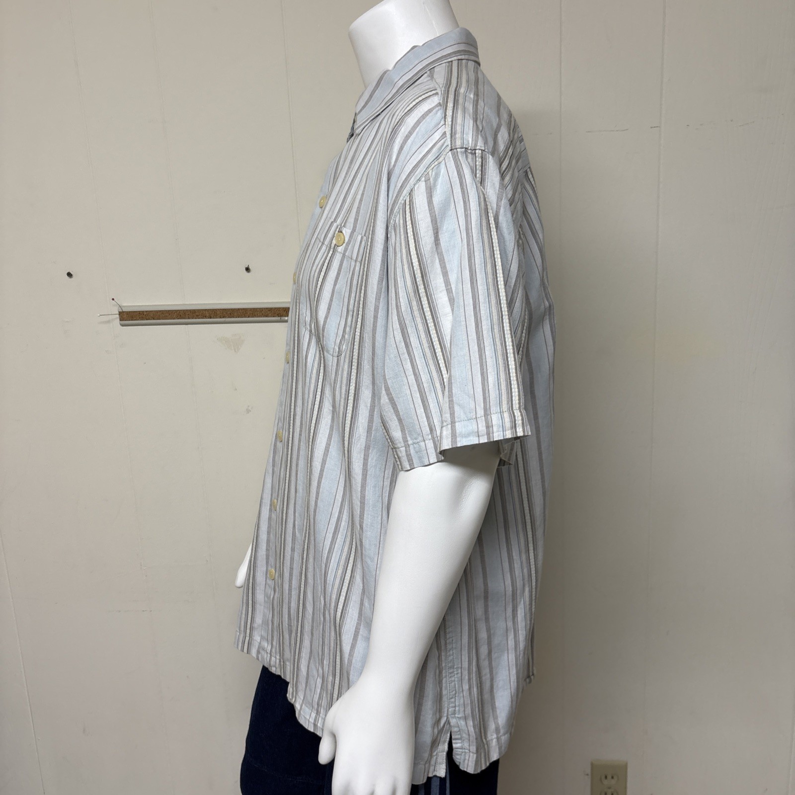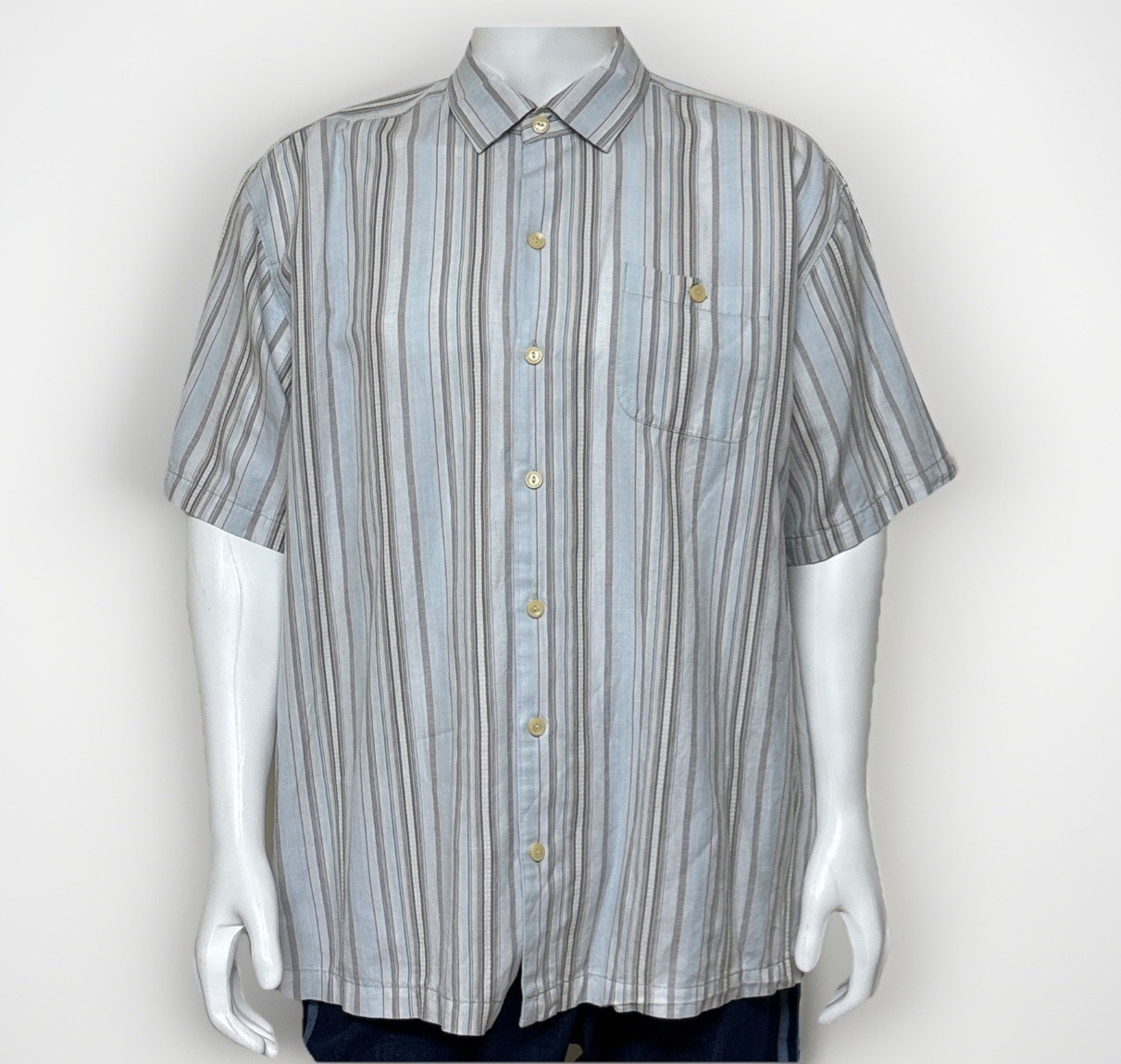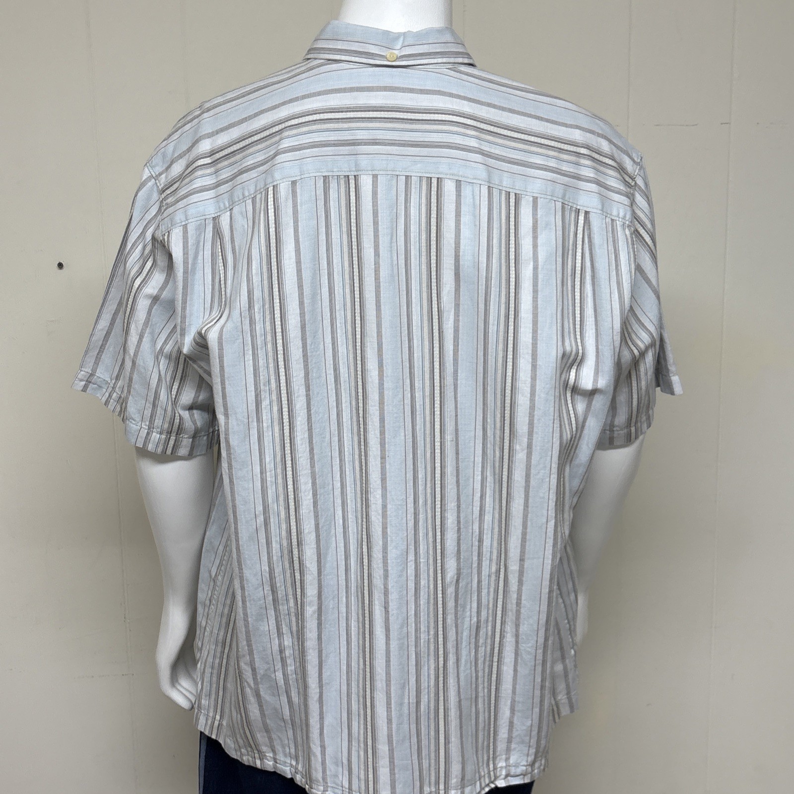 Tommy Bahama Short Sleeve Shirt Mens XL X Green Stripe Linen Blend Beach Wedding