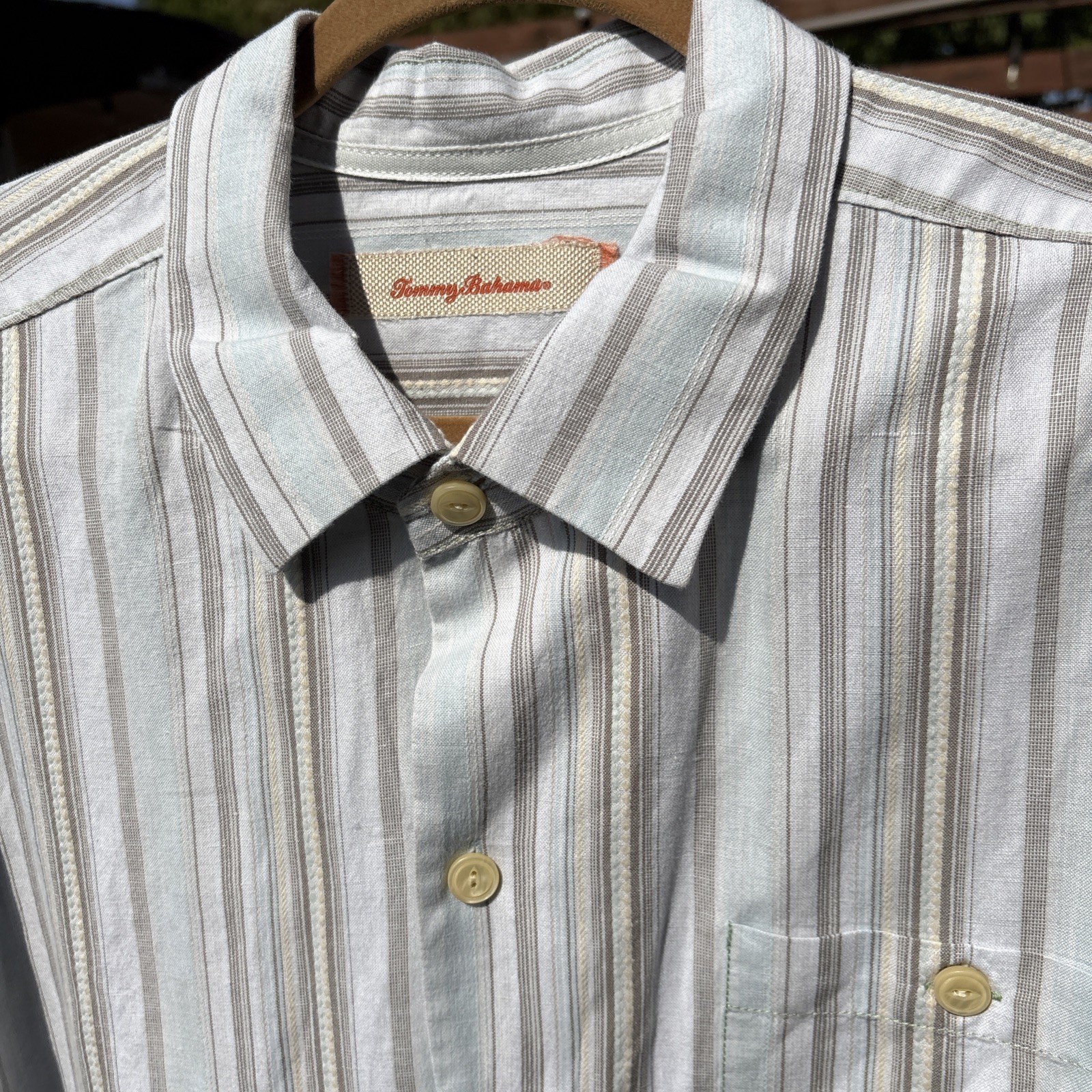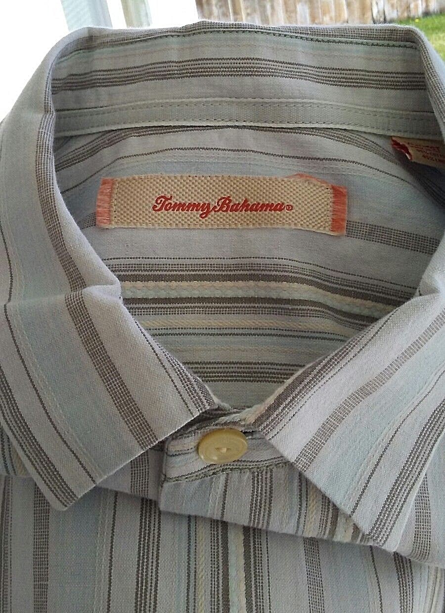 - Tommy Bahama Short Sleeve Shirt Mens XL X Green Stripe Linen Blend Beach Wedding