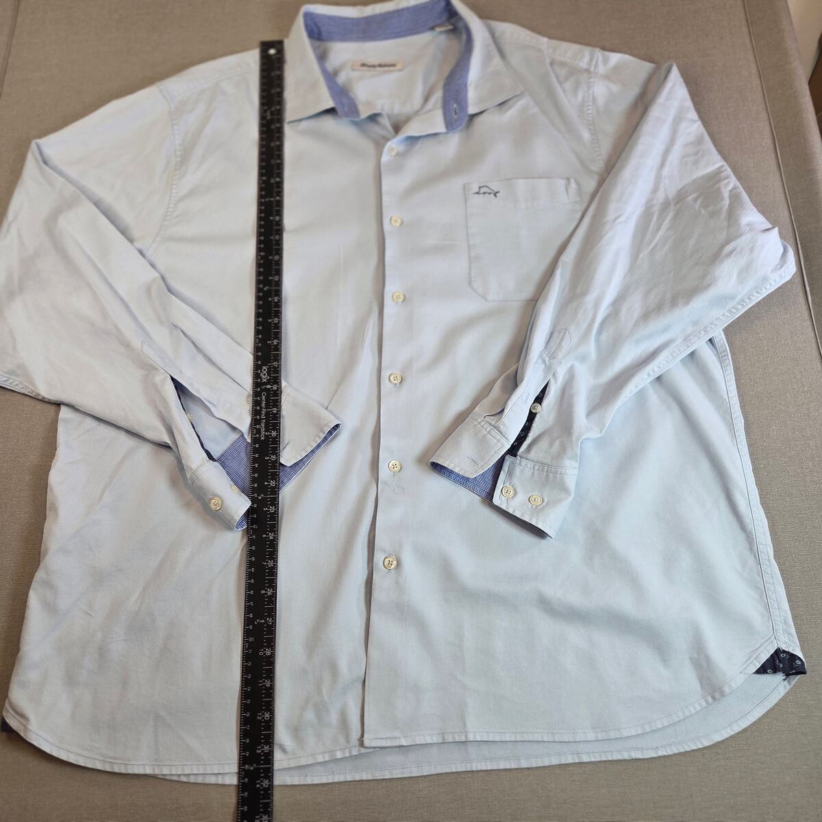 - Tommy Bahama XXL Cotton Silk Blend Button Up Shirt Blue Gingham Cuff Detail
