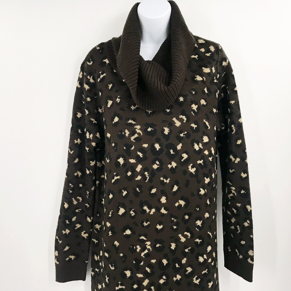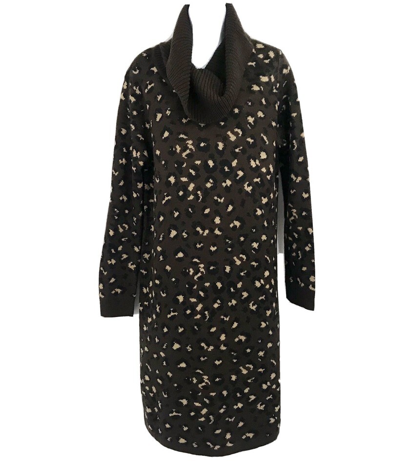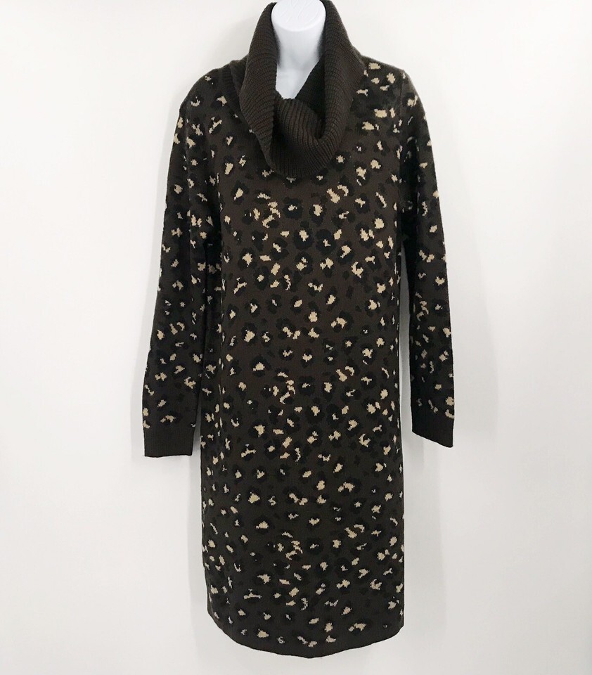 - Tommy Hilfiger Cowlneck Leopard-Print Sweater Dress - Size Large New