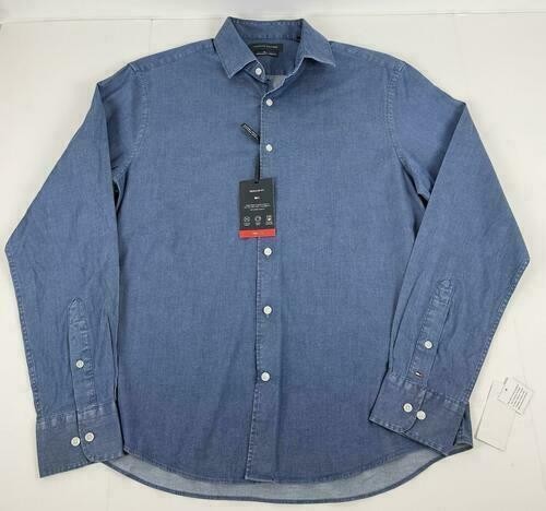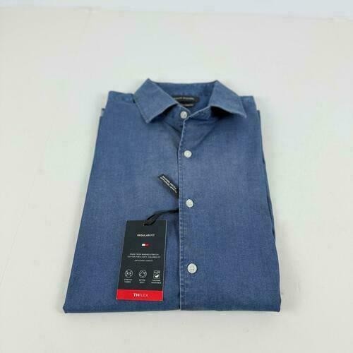 - Tommy Hilfiger Men's Flex Reg Fit Washed Untucked Dress Shirt Blue-17-17.5 34/35