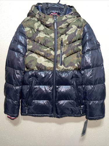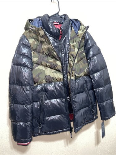 - Tommy Hilfiger Men's Midweight Chevron Quilted Hooded Puffer Jacket SZ L NEW