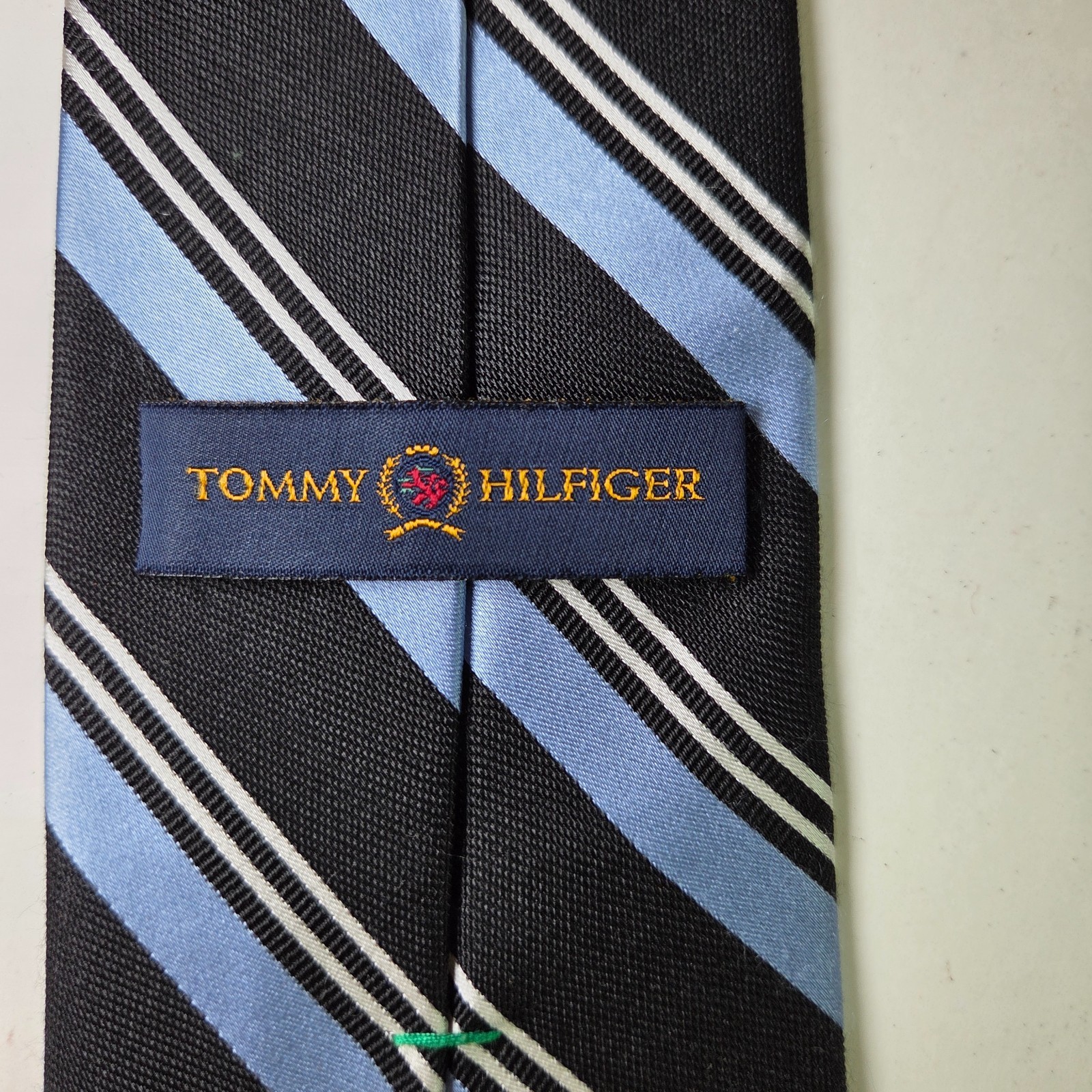 - Tommy Hilfiger Repp Striped Tie Black Blue White 100% Silk 3.5” x 58”
