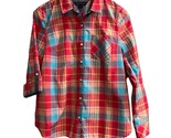 - Tommy Hilfiger Top Women L Plaid Button Down Roll Tab Slv Preppy Western Cowgirl
