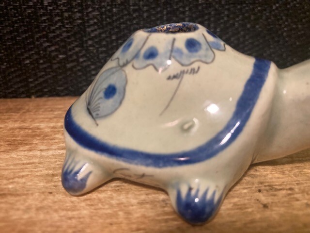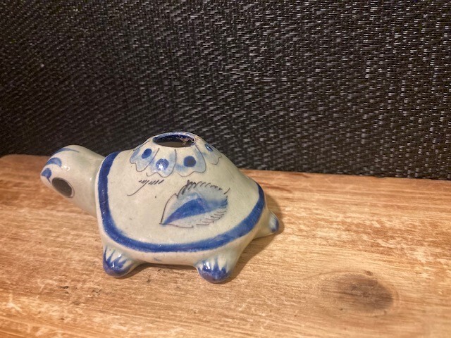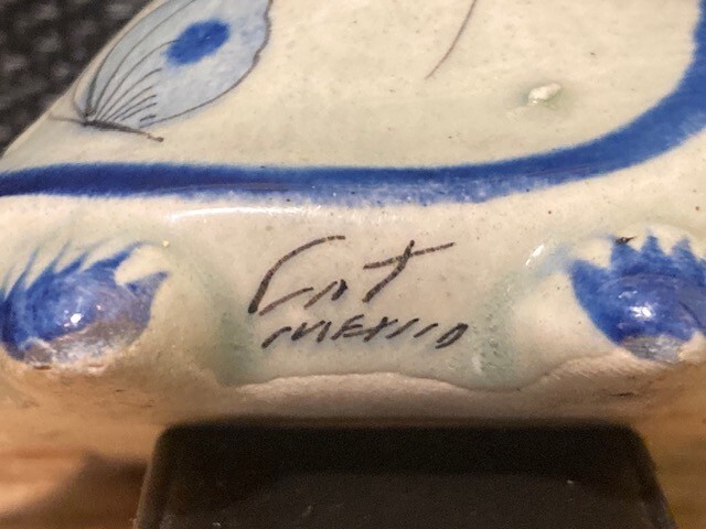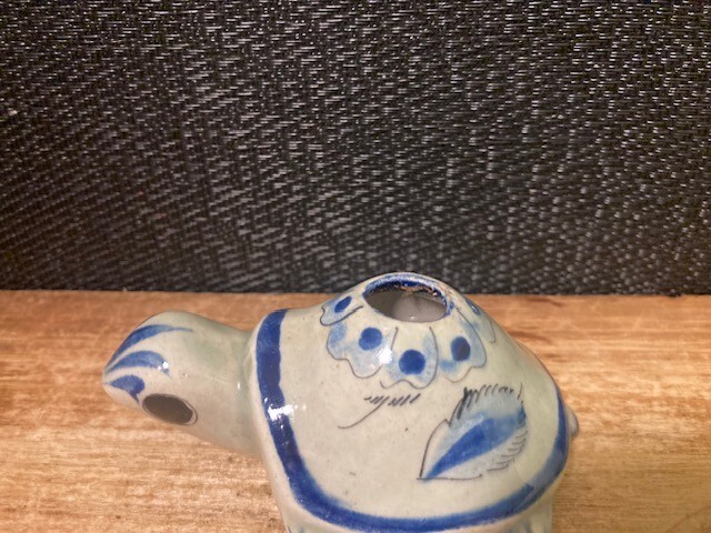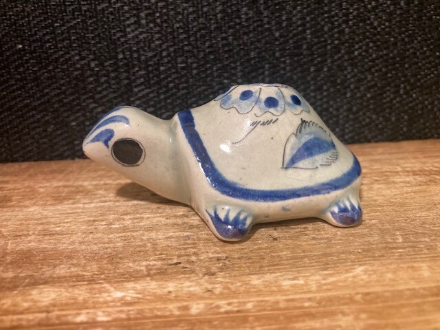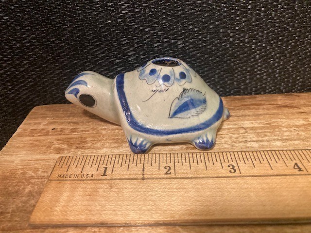 Tonala Mexican Turtle Hand-painted Candle Holder approx 3.25" Very good over all. A manufacturing defect lump per images. Please refer to images.