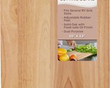 SINK COVER FOR RV SINK - Measures 15 inches long by 13 inches wide by 3/4 inch thick. Lightweight at 3 pounds. Sits over the sink FITS SEVERAL RV SINK SIZES - Suitable for use on smaller rectangular RV sinks around 13.25 to 14 inches long and 10 to 12 inches wide. Please measure your sink?s length and width before purchasing OAK WITH OIL FINISH - Solid Oak board with a natural color, smooth surface, and rounded edges. Brushed with food-safe cutting board oil that absorbs into the board, protecting the wood from the inside ADJUSTABLE RUBBER FEET - Provides stabilization and prevents movement during travel. Adjust the feet easily to fit over the sink. Loosen the feet with a screwdriver to adjust and tighten them in place VERSATILE BOARD - Use as an RV sink cover, RV stove top cover, cutting board, or serving space. Place over the sink to add more counter space for food preparation