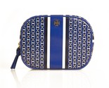 Tory Burch Blue White Chain Pattern Canvas Zipper Clutch Handbag Toiletry Bag