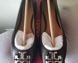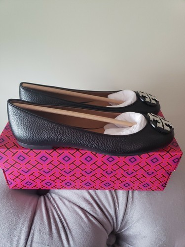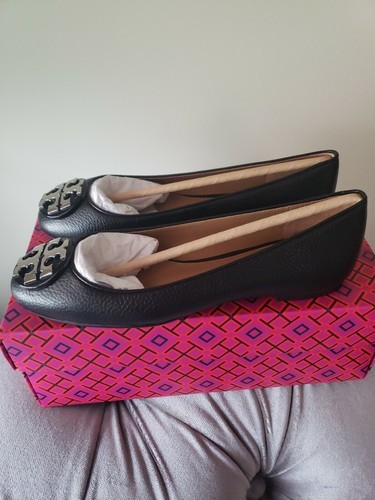 - Tory Burch Claire Ballet Flats in Black Pebbled Leather Silver Logo, Sz 6 NIB!