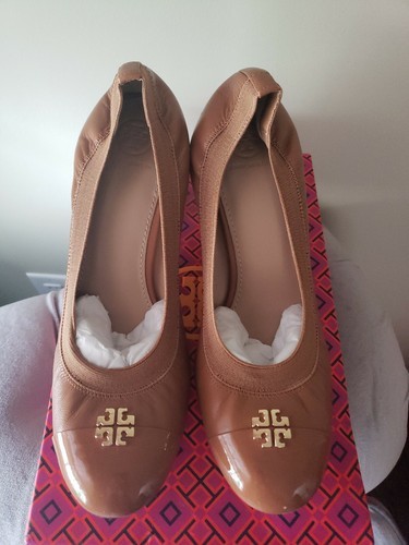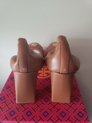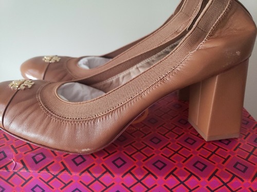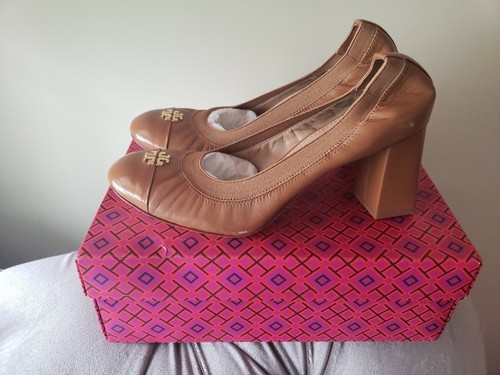 - Tory Burch Jolie 75mm Pump in Royal Tan Leather Gold Logo Hardware, Sz 10, Nib!
