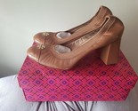 Tory Burch Jolie 75mm Pump in Royal Tan Leather Gold Logo Hardware, Sz 10, Nib!
