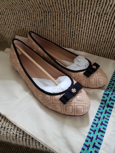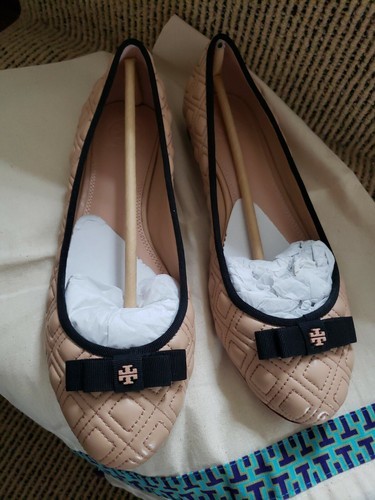 - Tory Burch Marion Quiltet Ballet Flat in Light Oak Leather Sz 7.5, New!