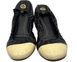 Tory Burch Womens Black & Cream Leather Cap Toe Ballet Flats Size 7.5