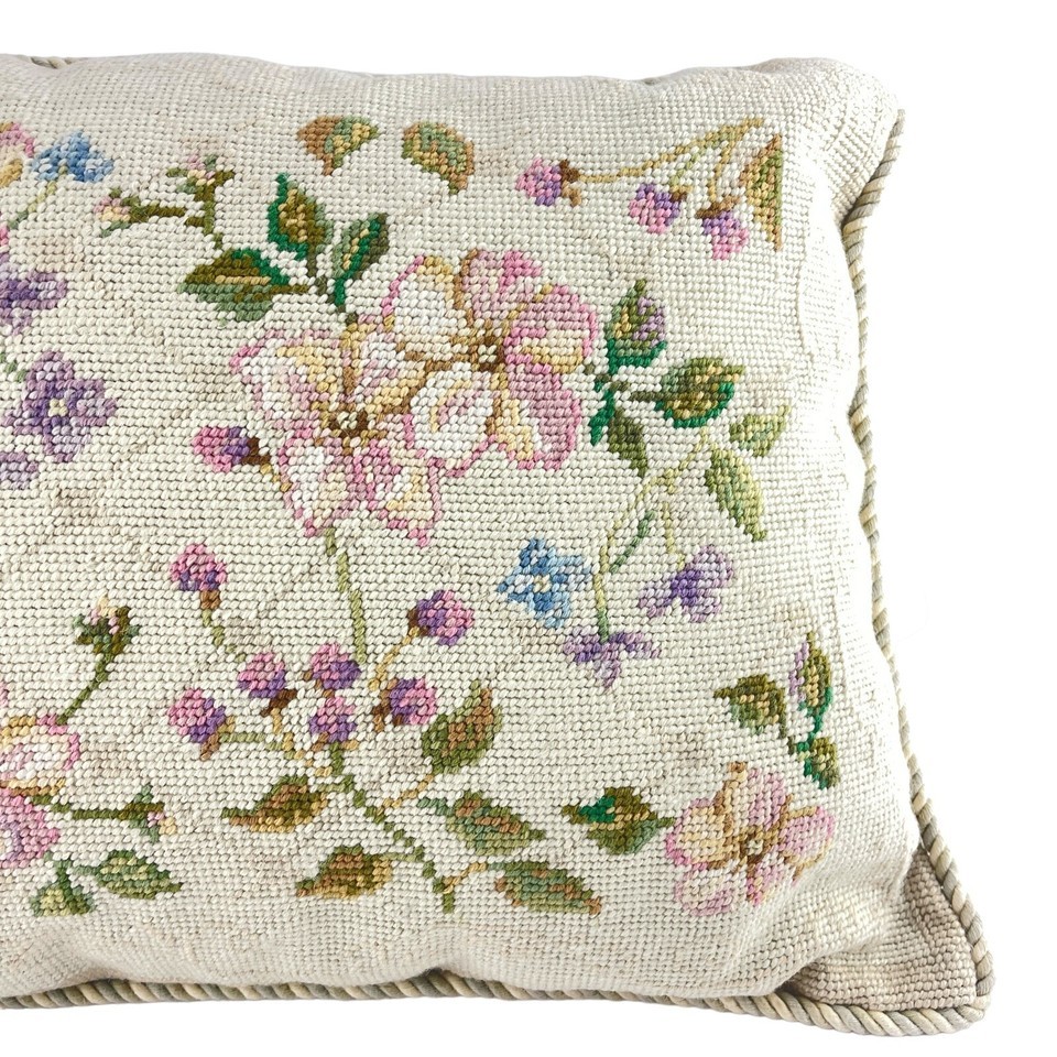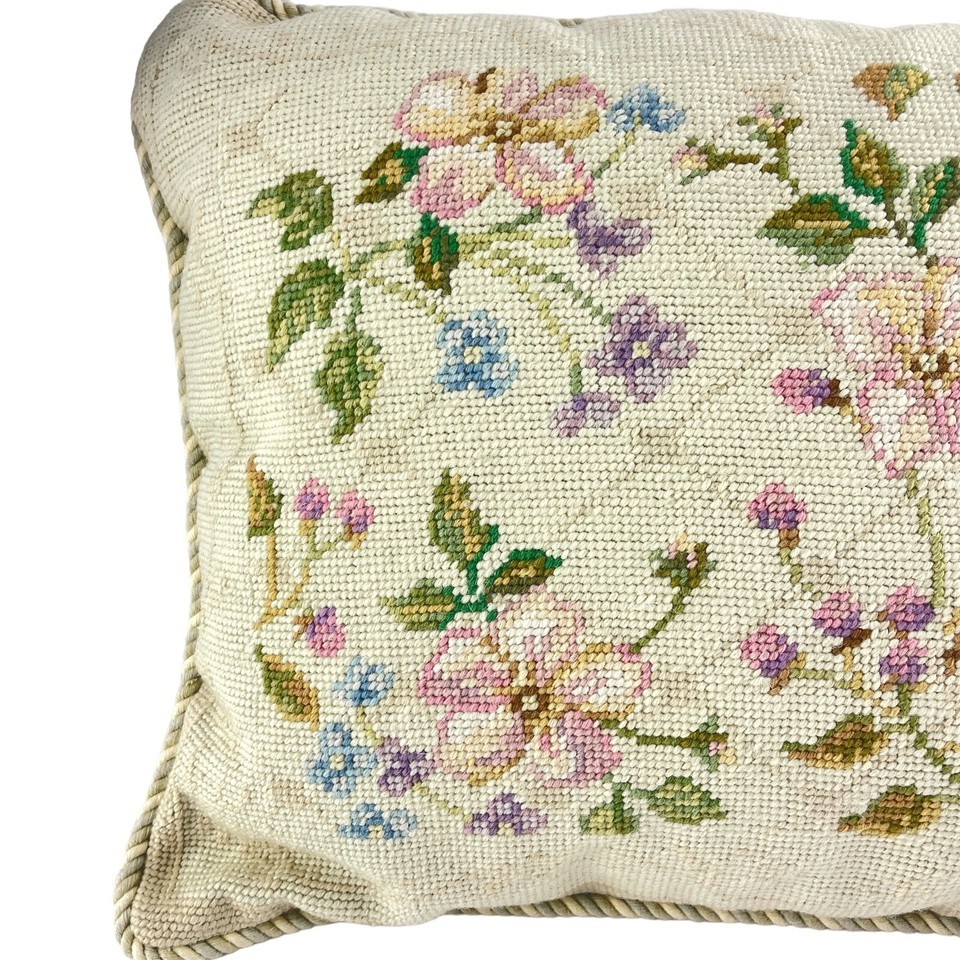 Tracy Porter Floral Throw Pillow Finished Cross Stitch Decor Cream Pink 17"x14"
