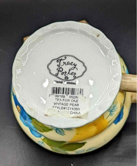 - Tracy Porter Tea For One Vintage 1214350 Yellow Pear Blue Flower Coffee Mug Cup