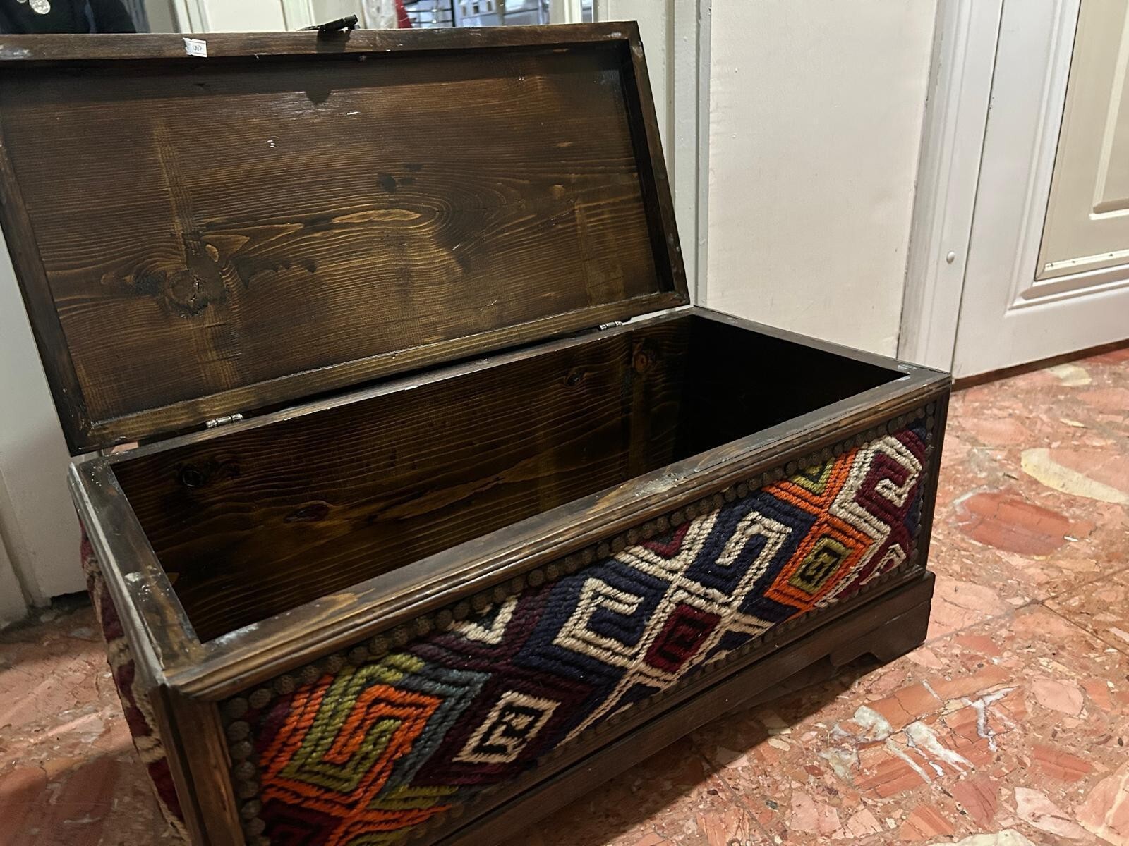 - Traditional Kilim Decorated Treasure Chest, Vintage Trousseau Chest Trunk 1970s