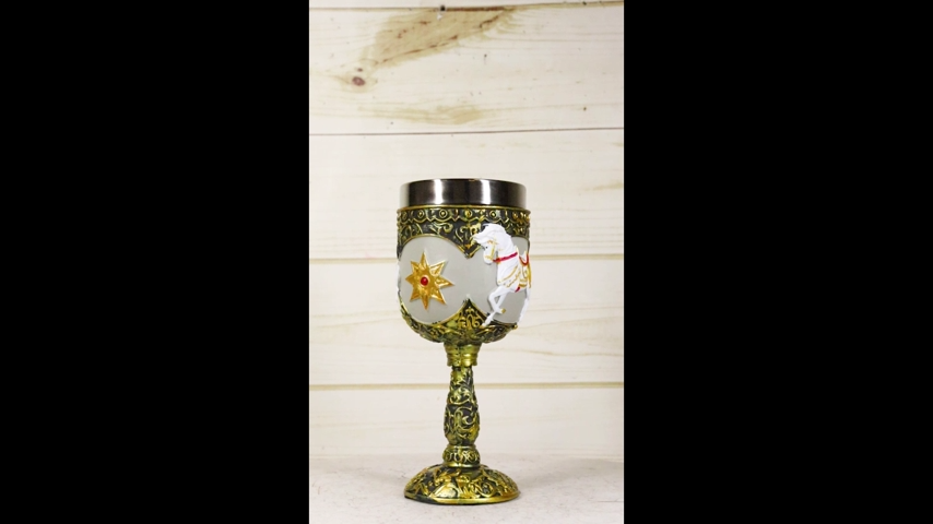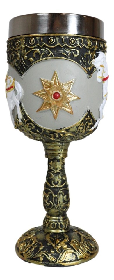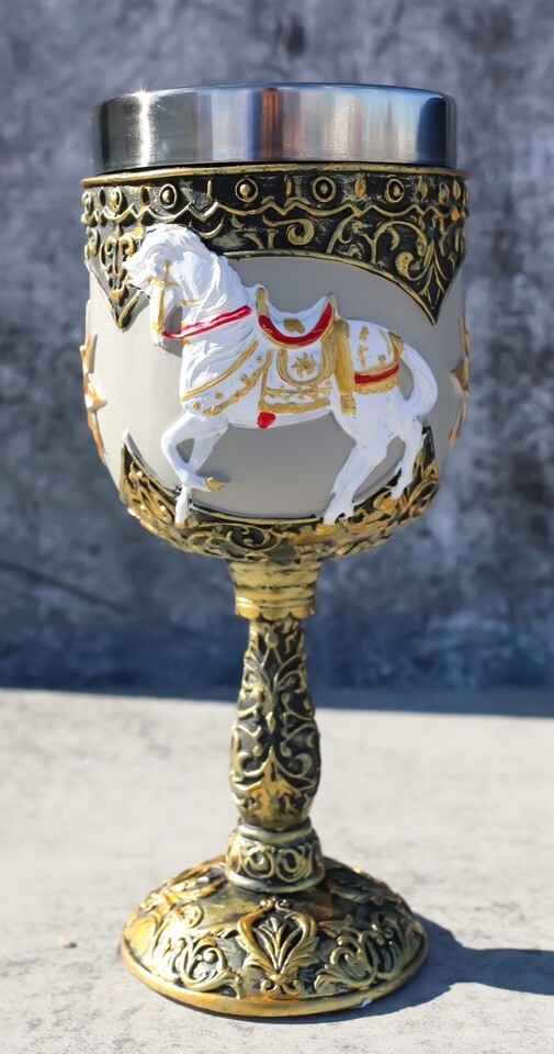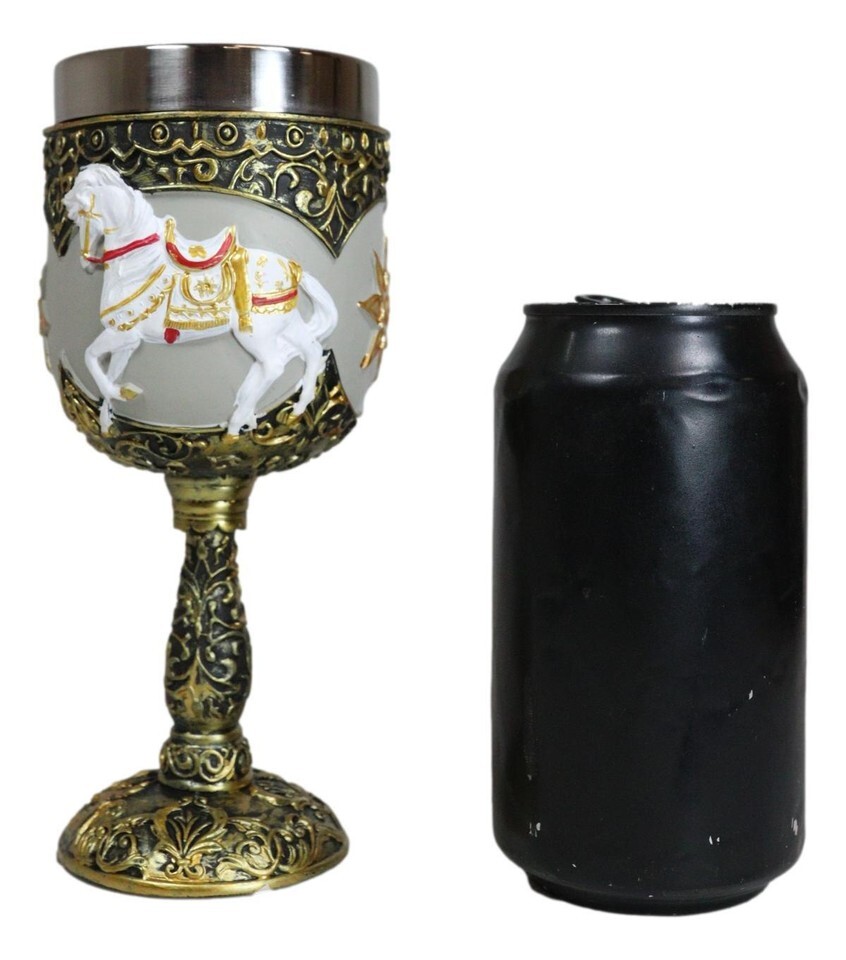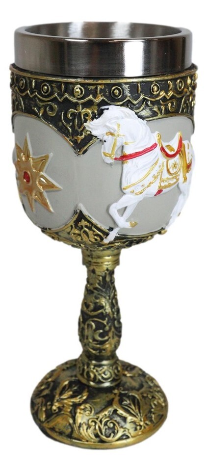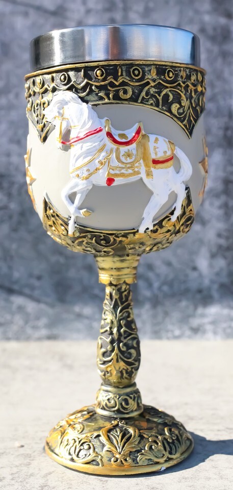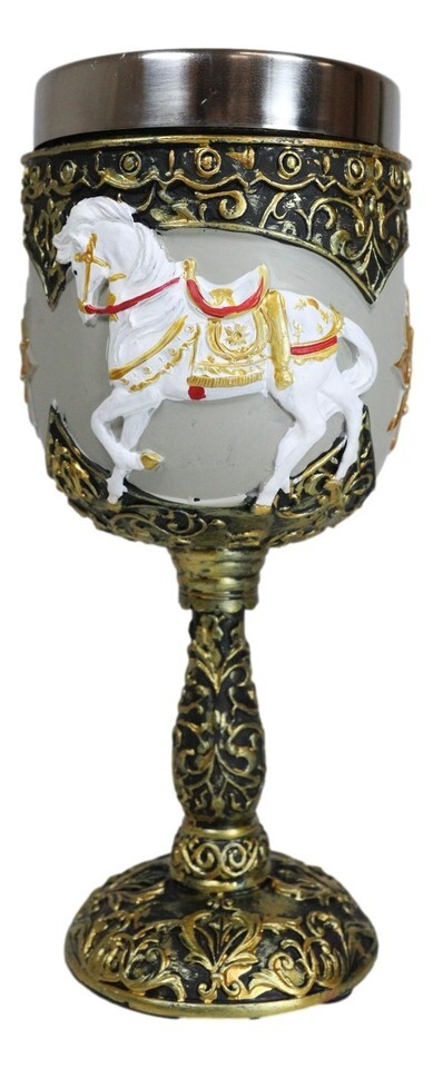 ? Horse lovers can drink like royalty with this fabulous goblet! Featuring a stainless steel insert for easy cleaning, the drinkware shows off a prancing white horse amidst a sea of golden accents. A lovely piece for any collector of this line of fanciful equines!