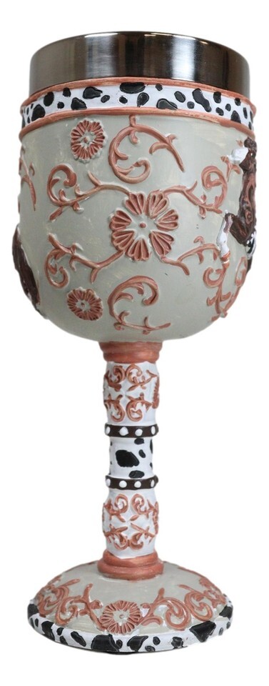 Trail Of Painted Ponies Western Leather Cowboy Horse Pony Scroll Art Wine Goblet