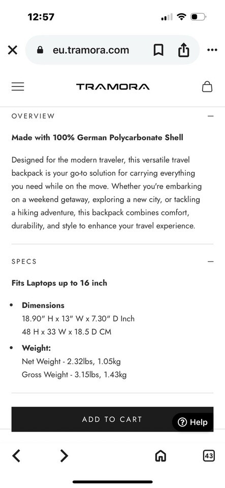 The Tramora Hard Shell Backpack in black polycarbonate is designed to fit up to a 16" laptop securely. It features adjustable straps for added comfort and a hardcase to protect your belongings. The backpack is lightweight and expandable for added convenience, making it an excellent choice for travel and everyday use. With its sleek silver color and durable polycarbonate material, this backpack offers both style and functionality for the modern traveler.
