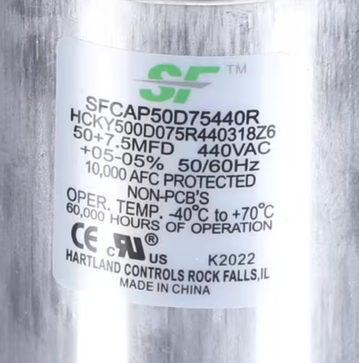 The Trane SFCAP50D75440R Run Capacitor (also known as HCKY500D075R440318Z6) is a dual-value round capacitor built for HVAC systems that require both fan and compressor support. With a capacity of 50 + 7.5 MFD at 440 volts, this component ensures stable, energy-efficient motor operation and helps maintain consistent system performance across varying electrical loads.