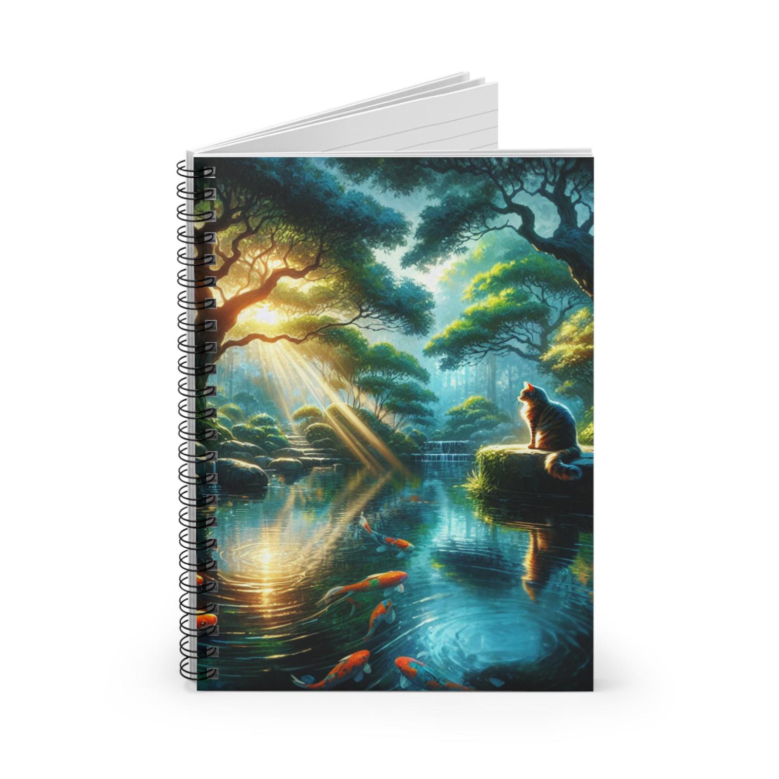 - Tranquil Nature Spiral Notebook, Ruled Line, Koi Pond Journal, Cat Lover Gift, A