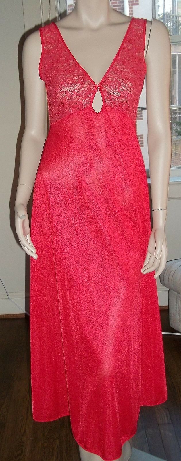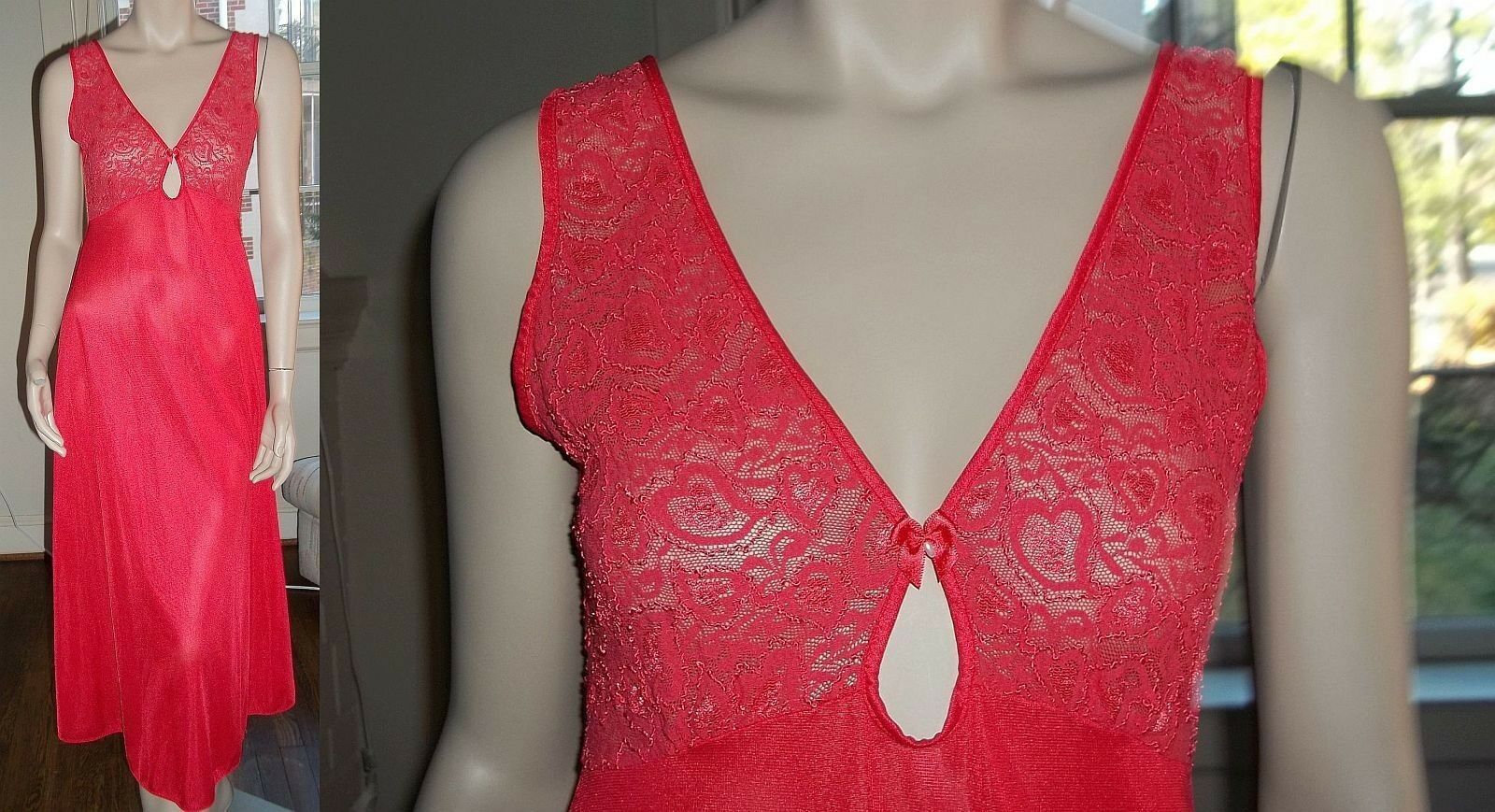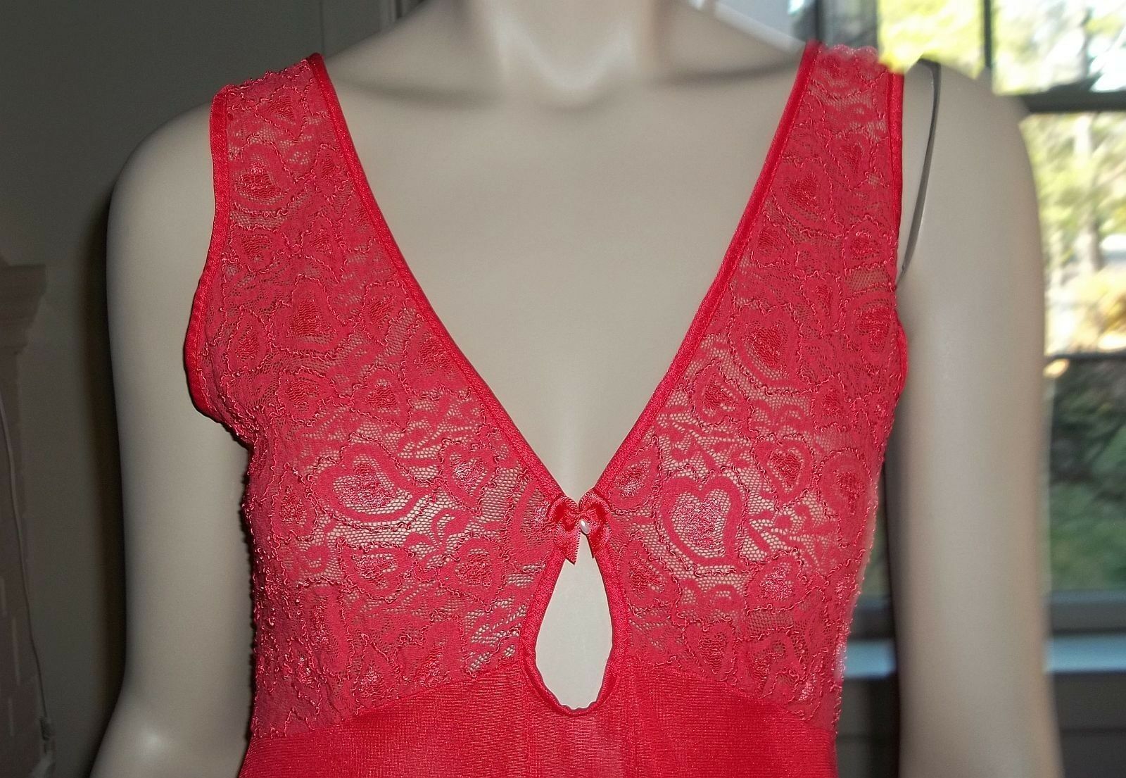 - Translucent Lace Red Nightgown Keyhole Bodice Negligee Med Romantic Moods