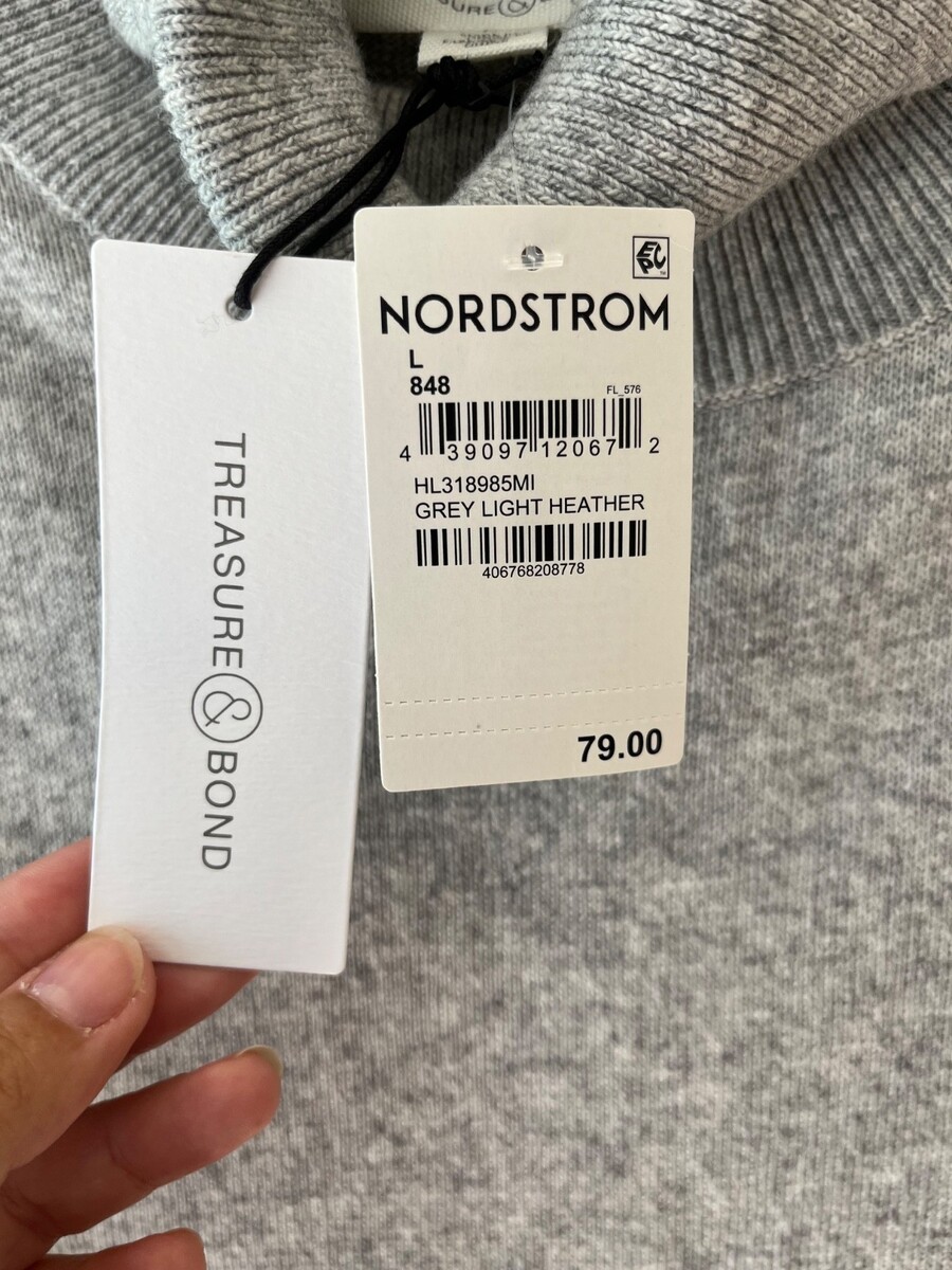 - Treasure n Bond Sz L Gray Drapey Turtleneck Sweater Pullover Stretch Tunic