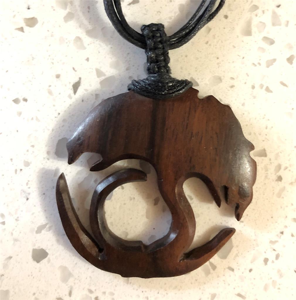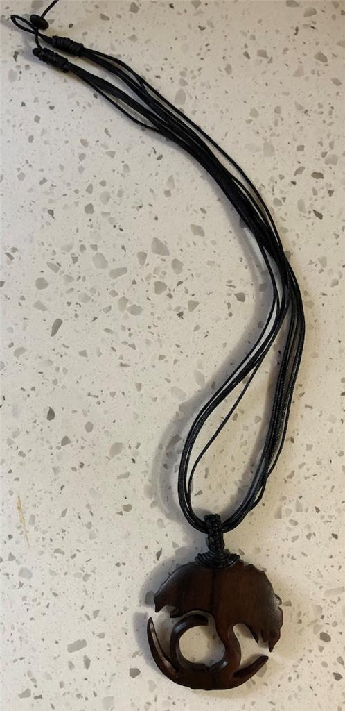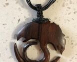 Beautiful hand-carved wooden Tree of Life on a choker necklace, made in Bali. The moon itself measures approximately 2 inches long and 2 inches wide, with about an 7 to 8 inches of stranded cording.