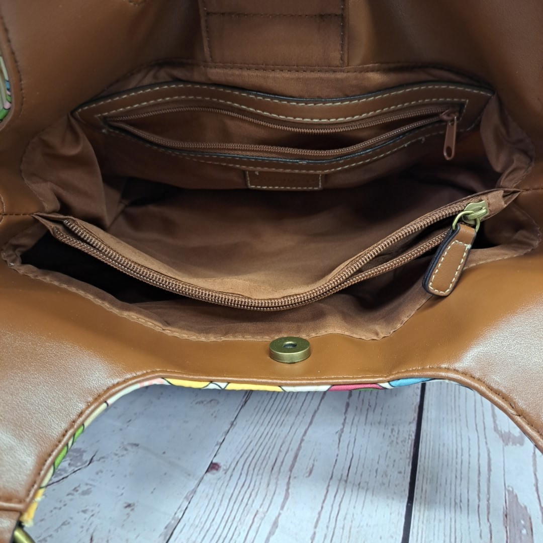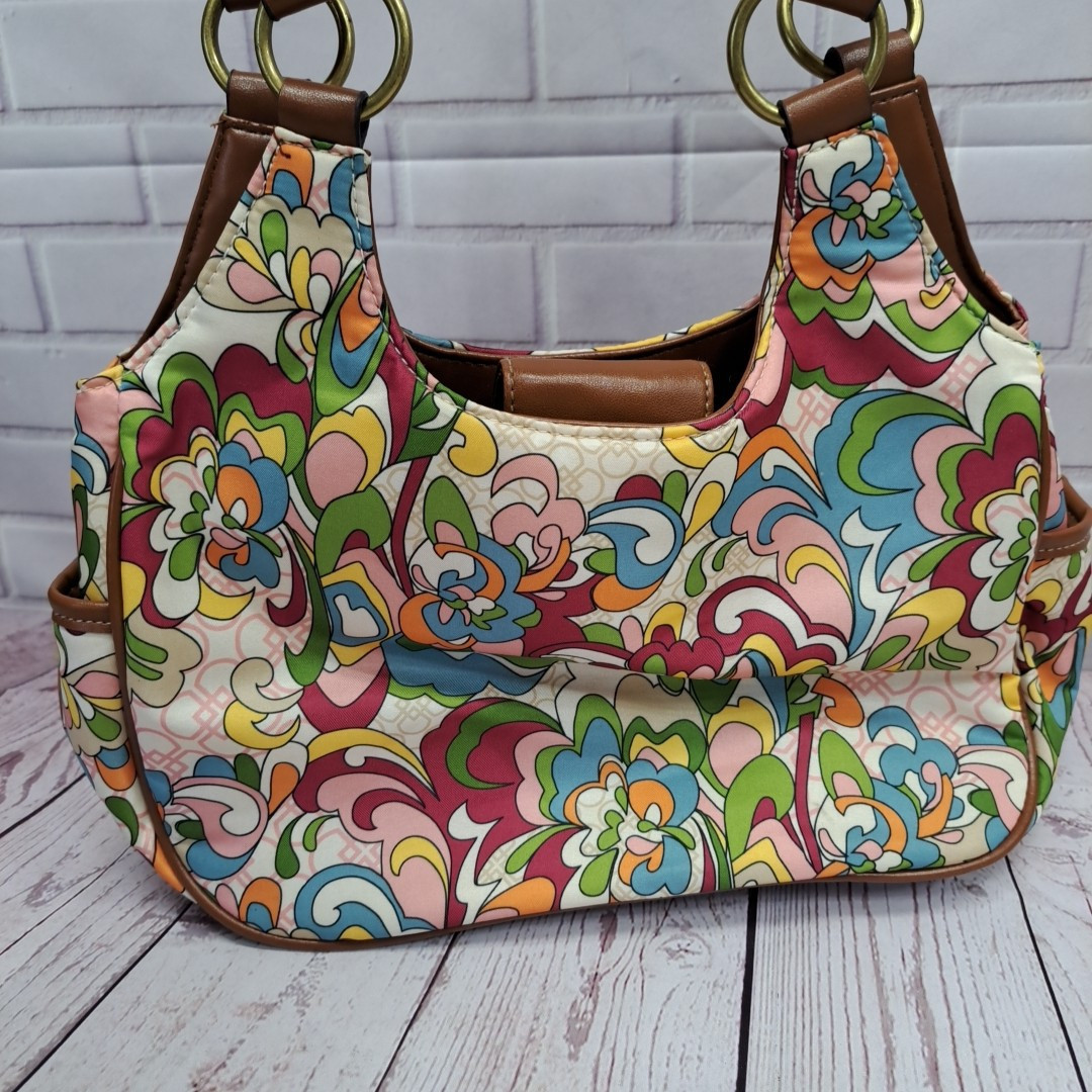 - Treviso Purse Hobo Handbag Purse Multicolored Floral Pattern Tan Trim