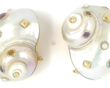 Feature Mix of Gemstones and Seed Pearls Ornamenting Shell Earrings