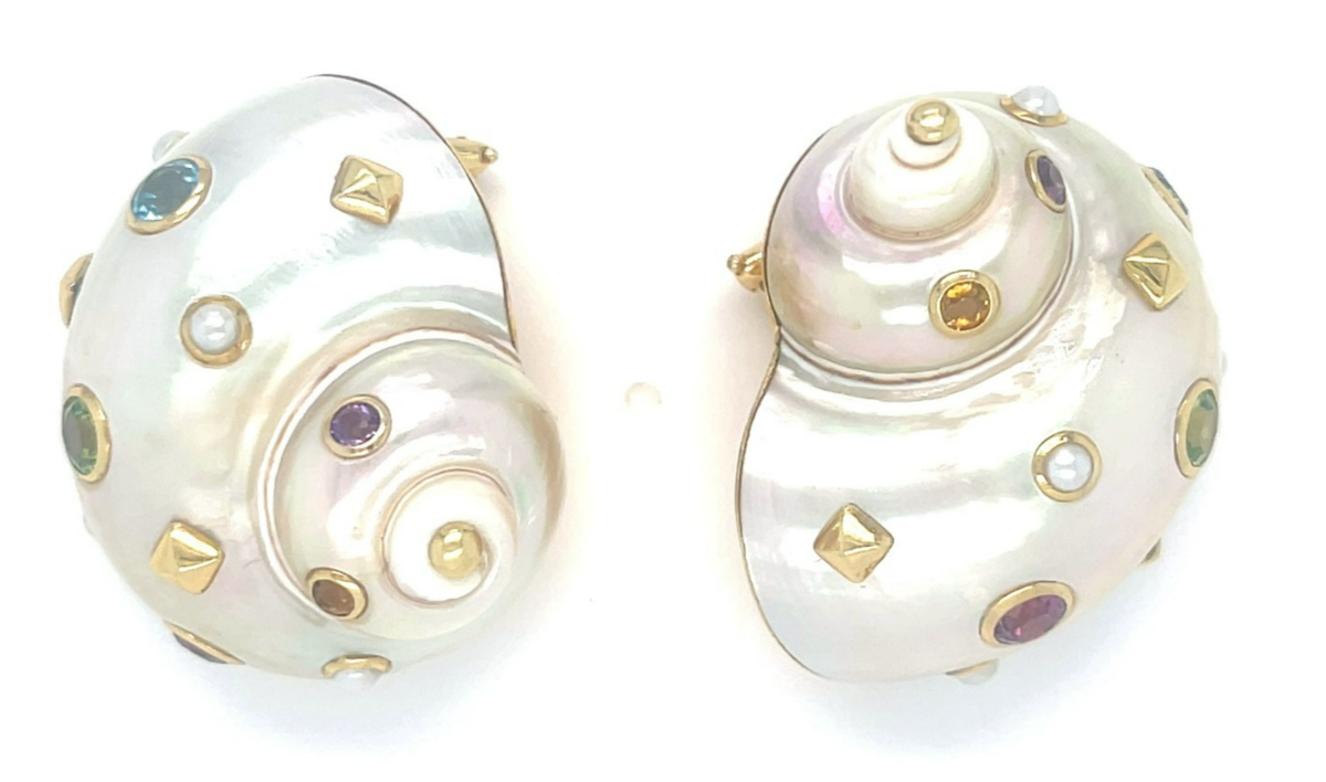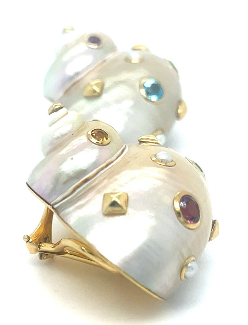 - Trianon 18k Gold Mother-of-Pearl Shell Earrings with Gemstone Accents