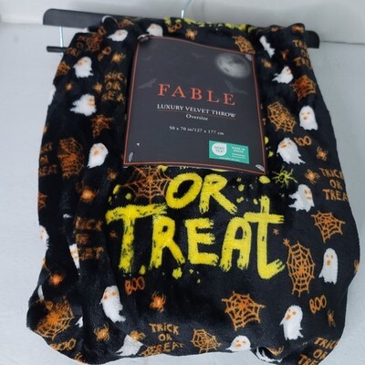 - Trick or Treat Halloween Plush Throw Blanket Velvet Ghosts Spiders Print 50 x 70