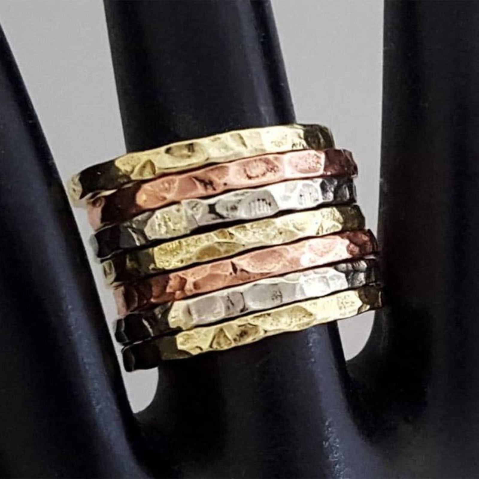 Tricolor Tri Metal Seven layer Gypsy Ring Hammered Silver Bronze Copper