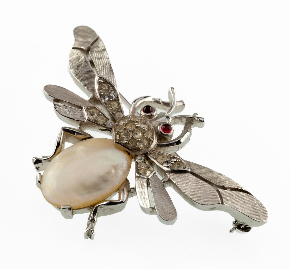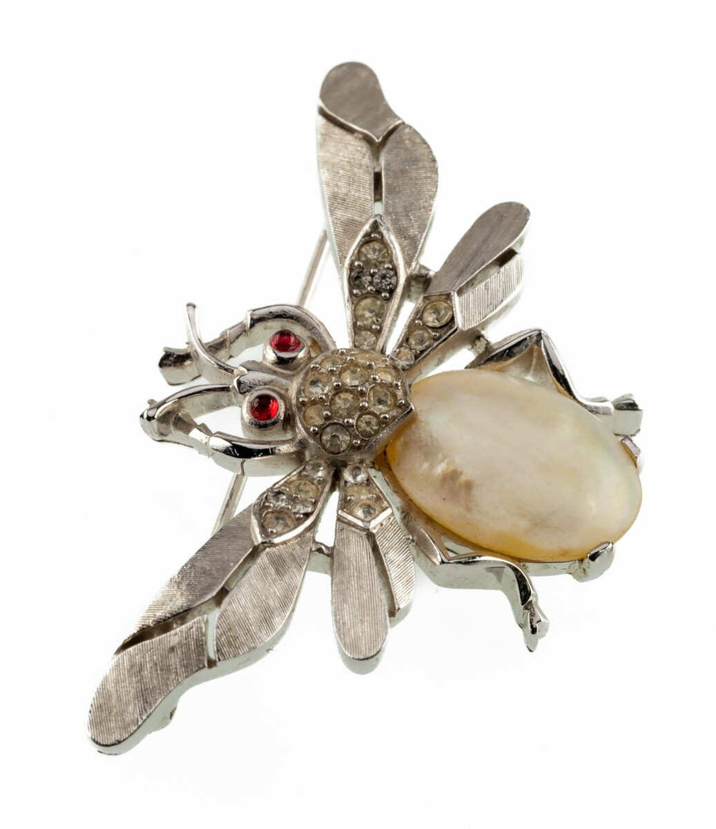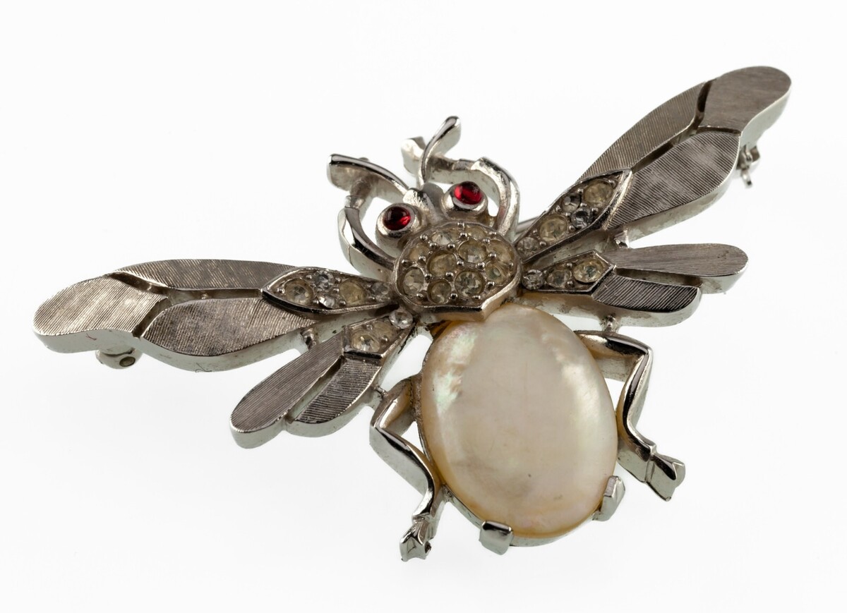 - Trifari Silvertone Jelly Belly Pearl Bee Brooch Crown Hallmark 1950s