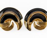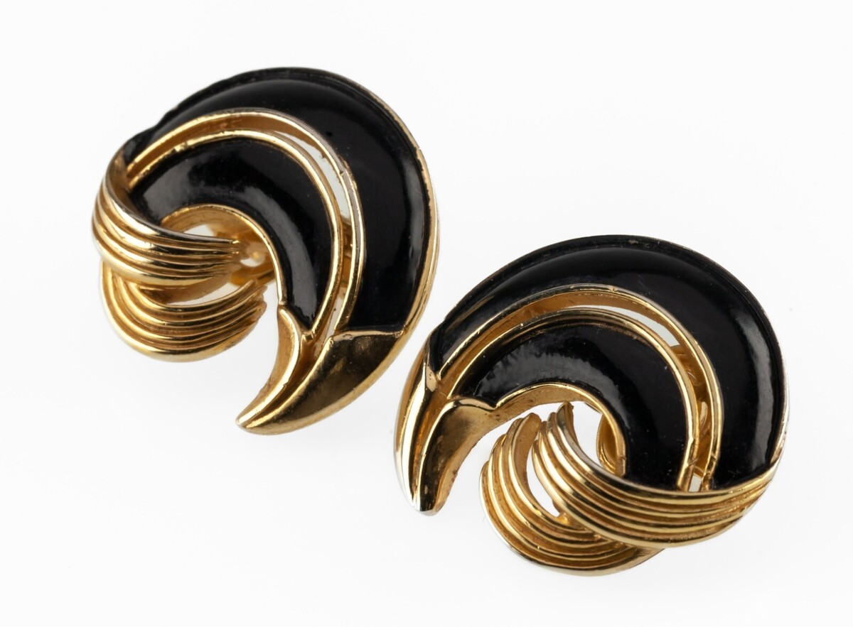 - Trifari Vintage Goldfarbig Schwarz Emaille Wirbel Kostüm Ohrringe