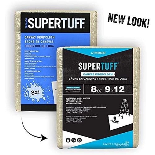 Trimaco's SuperTuff Premium Contractor Grade Heavywight Canvas is an 8 oz, double-stitched canvas drop cloth ideal for painting and cleaning. Constructed from large and medium piece panels of twill, drill, duck or uncut cord, this drop cloth is perfect for covering furniture and floors before painting. All drop cloths are made from full panels, washable and reusable. Ideal for painting, staining, wallpapering, furniture protection, maintenance and more. Measures 9-feet x 12-feet. Ideal for large rooms and areas.