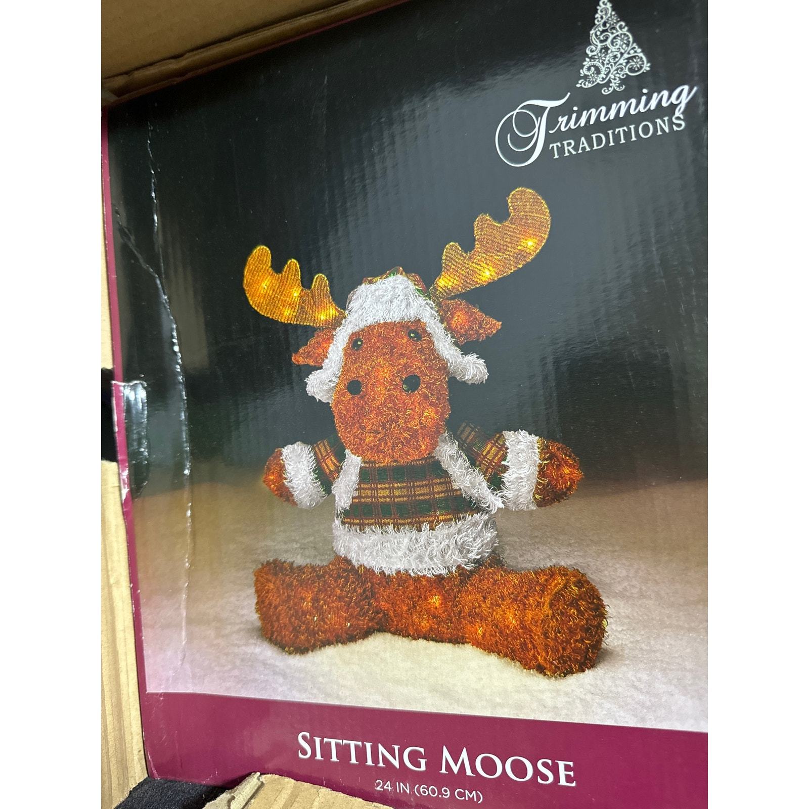 - Trimming Traditions Sitting Moose Wearing Plaid Jacket 24 in