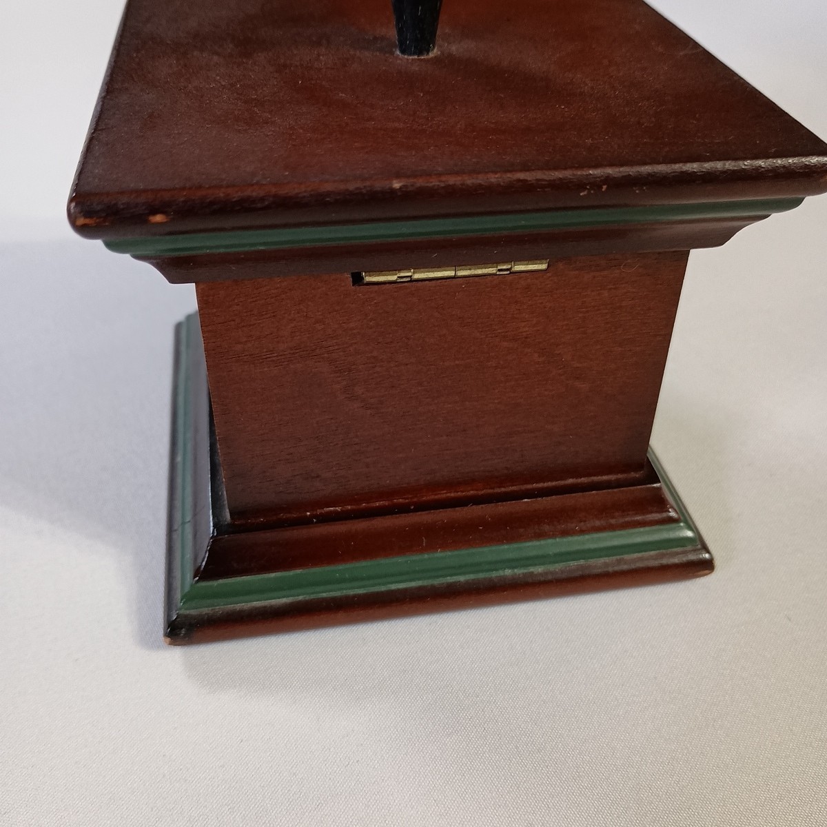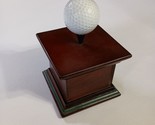 The Trinket Box Figi Country Club 1997 Golf Theme is a small square-shaped wooden box adorned with a golf ball and tee on the lid. This decorative piece features a medium brown finish and hinged top closure. Perfect for golf enthusiasts or collectors, this unique trinket box from the year Y2k 1997 adds a touch of charm and nostalgia to any space. Normal wear. See pictures. Sizes are approximate.
