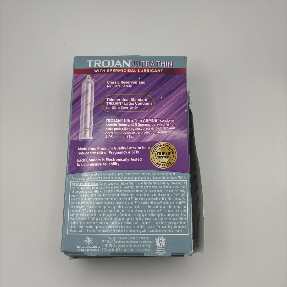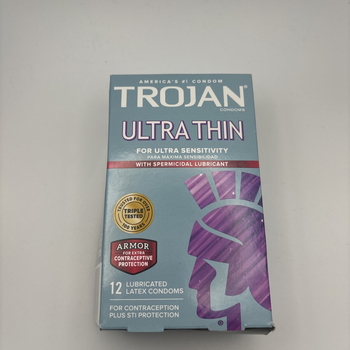 - Trojan Condom Sensitivity Ultra Thin Spermicidal 12 Count Exp. 07/2027