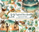 Tropical New Year Watercolor Clipart | Island Holiday PNG Bundle (Digital Downlo
