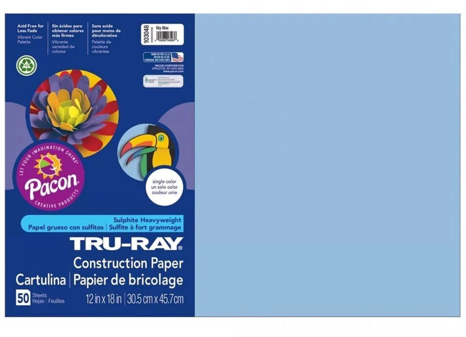 - Tru-Ray Construction Paper, Sky Blue, 12" x 18", 50 Sheets