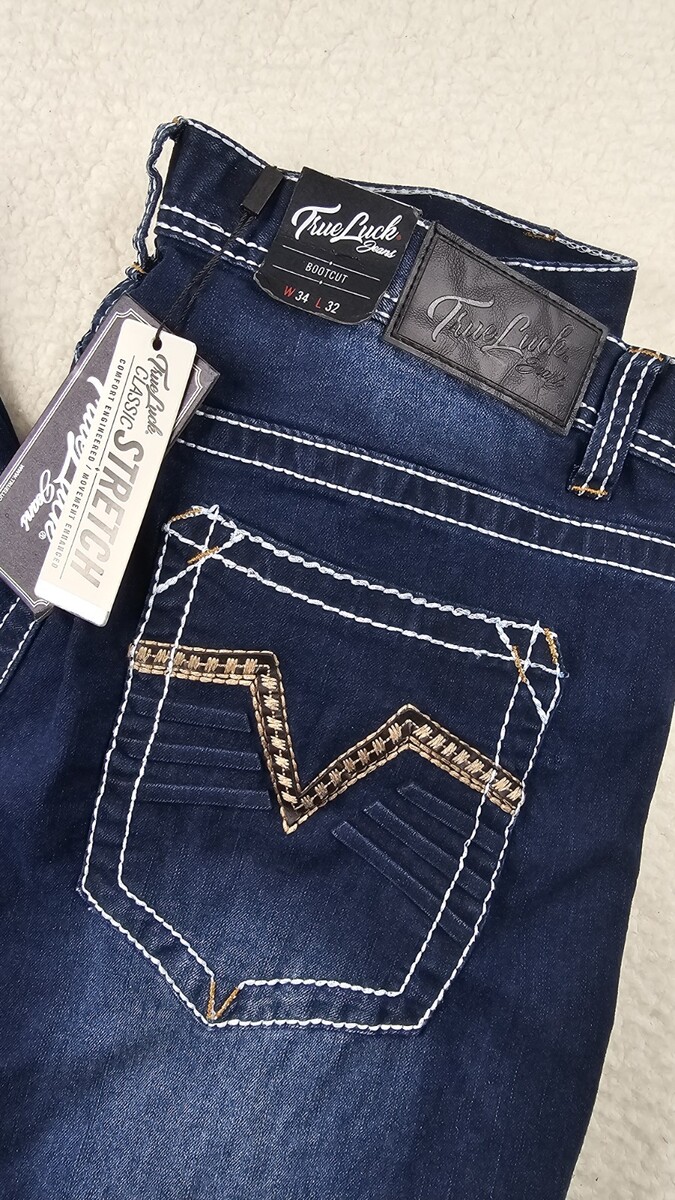 True Luck Mens Denim Jeans Size 34x32 Bootcut Classic Stretch