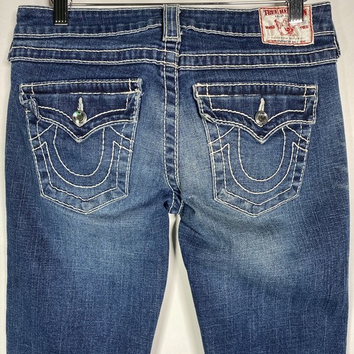 - True Religion Blue Denim Boot Cut Jeans Pants Size Tag Missing Waist 28"