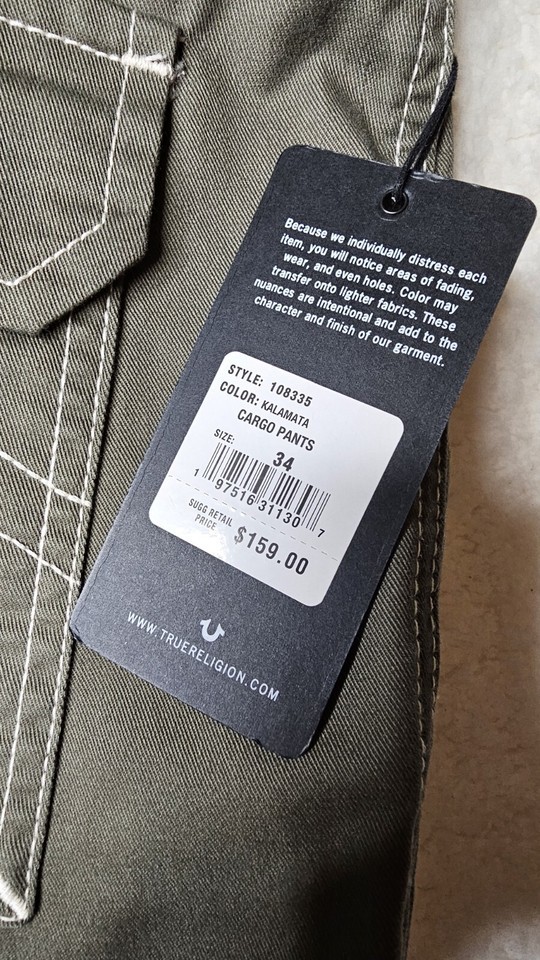 - True Religion Kalamata Green Cargo Pants Mens Size 34 $159 197516311307 New