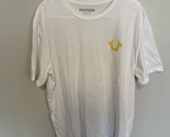 True Religion T-shirt Men Size 2XL White Gold Monk Embossed Logo Metallic