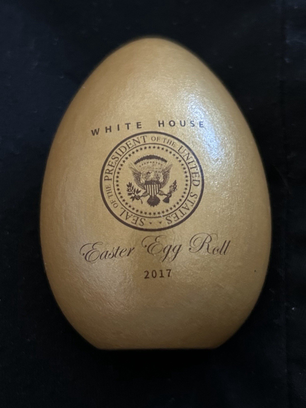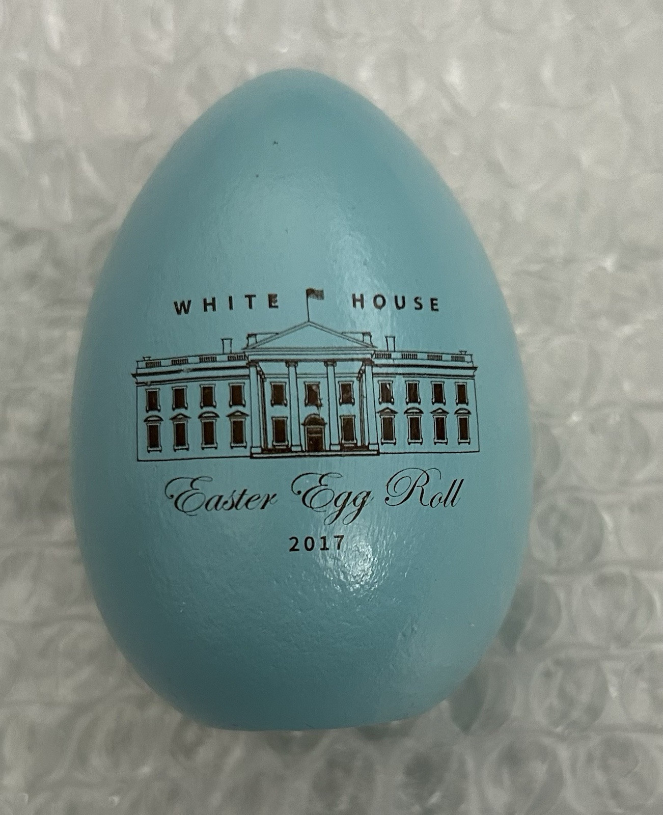 sale IS FOR THE OFFICIAL WHITE HOUSE RARE 2017 PASTEL BLUE EASTER WOOD EGG... FRONT OF EGG HAS PRESIDENTIAL WHITE HOUSE DESIGN with FACSIMILE SIGNATURES OF DONALD MELANIA TRUMP?.2017 ANNUAL EASTER EGG ROLL WAS THE FIRST OF PRESIDENT TRUMP ADMINISTRATION EGGS WERE ISSUED IN VERY LIMITED AMOUNTS?ITEMS FROM THE EVENT ARE HARD TO FIND...EXCELLENT NEW CONDITION ... LAST 19 PHOTOS ARE TO SHOW OTHER ITEMS LISTED FOR INDIVIDUAL PURCHASE THIS sale IS FOR ONLY THE OFFICIAL 2017 WHITE HOUSE 1 BLUE WOOD EASTER EGG ?MY OTHER LISTING OFFER MANY MORE WHITE HOUSE PRESIDENTIAL ITEMS FOR PRESIDENTS LINCOLN, ROOSEVELT TRUMAN ,KENNEDY , REAGAN , BUSH CLINTON, BUSH OBAMA TRUMP BIDEN ?SAVE ON POSTAGE WITH MULTIPLE PURCHASE WHEN YOU ASK SELLER FOR INVOICE AND PAID WITH ONE PAYMENT.