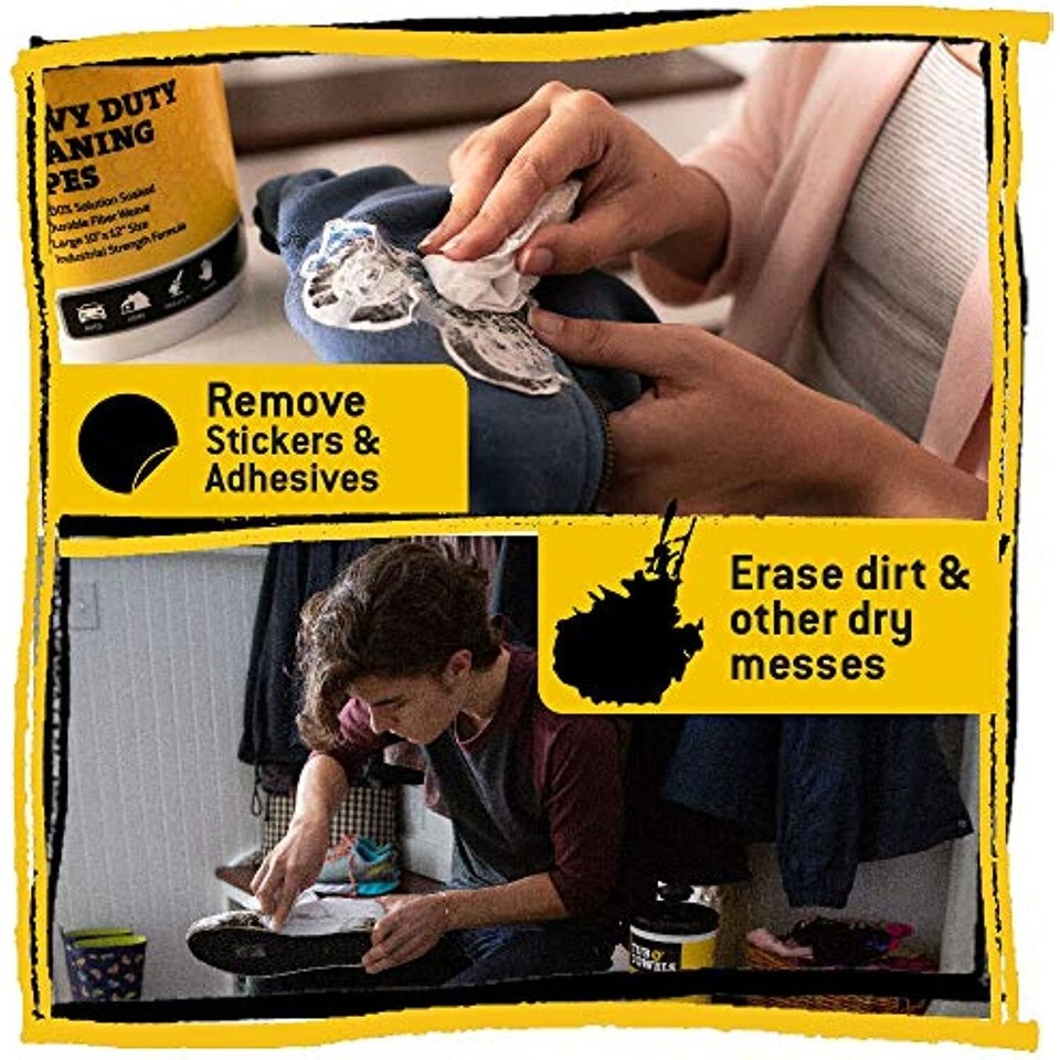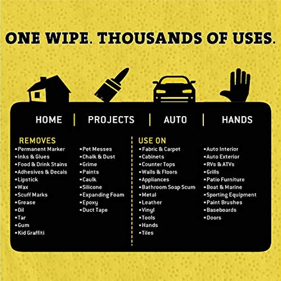 Removes heavy stains others won't including: grease, tar, ink, paint, permanent marker, wax, scuffs, lip stick, nail polish, food and drinks, pet stains and more.