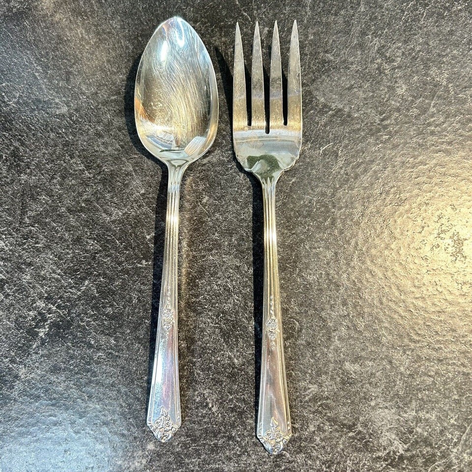 - Tudor Plate 1948 SWEET BRIAR Serving Spoon & Fork Flatware Oneida Community