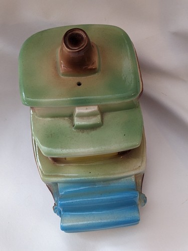 Il s'agit d'un pot a biscuits de poterie bisque americaine rare en forme de remorqueur de roueurs severes avec une cloche dans le couvercle. Le pot se situe a 9 "de haut et a une longueur de 12" et une largeur de 7 ". Il dispose d'un magnifique palette de couleurs brun et vert et est fabrique a l'aide de style et de technique de production de poterie d'art. Le pot est livre avec un couvercle, ce qui le rend parfait pour stocker des cookies ou d'autres friandises. Ne manquez pas la chance d'ajouter cette piece unique et charmante a votre collection!