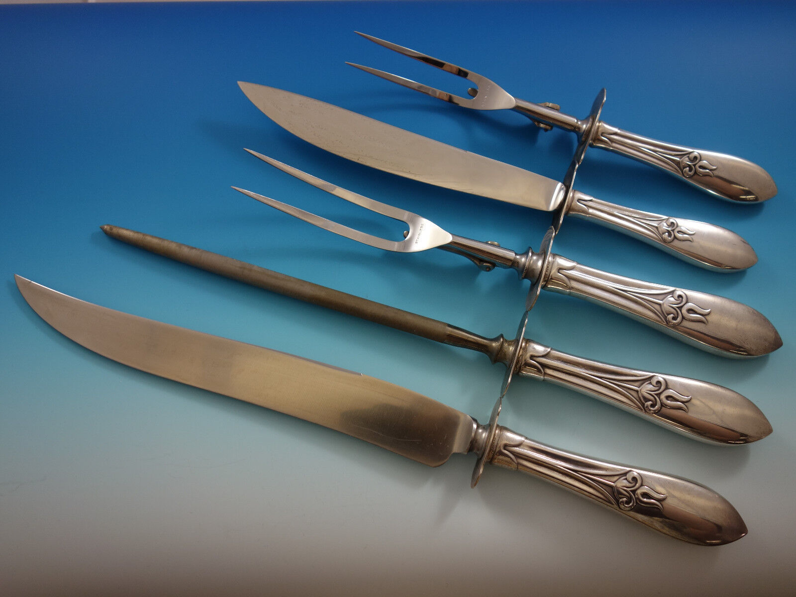 COMPLETE FLATWARE SETHOSTESS HELPERSHOLLOWWARE / TEA SETSMUSEUM QUALITY/FIGURAL SILVERFINE ESTATE VINTAGE JEWELRYMID-CENTURY MODERNSILVER FLATWARE SILVERWAREBuccellatiChristofleGeorg JensenNew Georg Jensen HollowwareNew Georg Jensen JewelryGorhamInternationalLuntMichael Aram - NewReed BartonTiffany Co.TowleWallaceWhitingPLACE SETTINGS