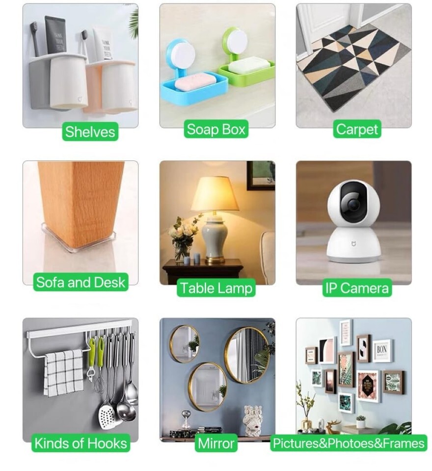 Diversified Uses to Meet All Your Needs- Strong Holding Power can perfectly mount or repair stuff without drilling hole or nails, fixing or pasting items such as picture hangers, frames, photos, festival decorations, wall paper stickers, posters, hooks, floating shelves, desk holders, carpets, power sockets, art crafts, board shelf, LED, DIY items, school house room decor aesthetic and so on.